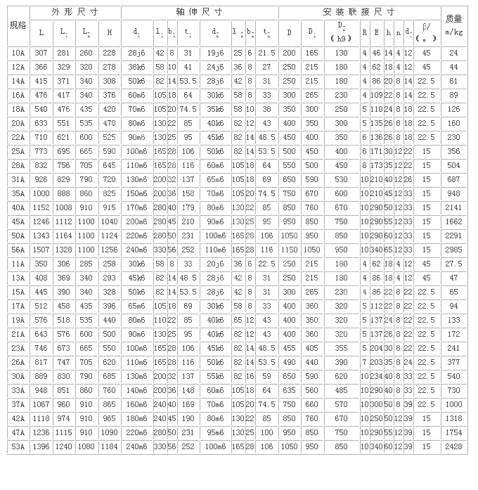工作條件:輸入轉速28B型以下≤3000 r/min,40B型以下≤1800r/min,45B型以下≤1000r/min,Y型≤1500r/min;公稱轉矩2.107~588kN·m;傳遞功率0.25~2000kW;工作環境溫度為-40~45℃,低于0℃時,啟動前潤滑油應預熱,高于45℃時應采取降溫措施。