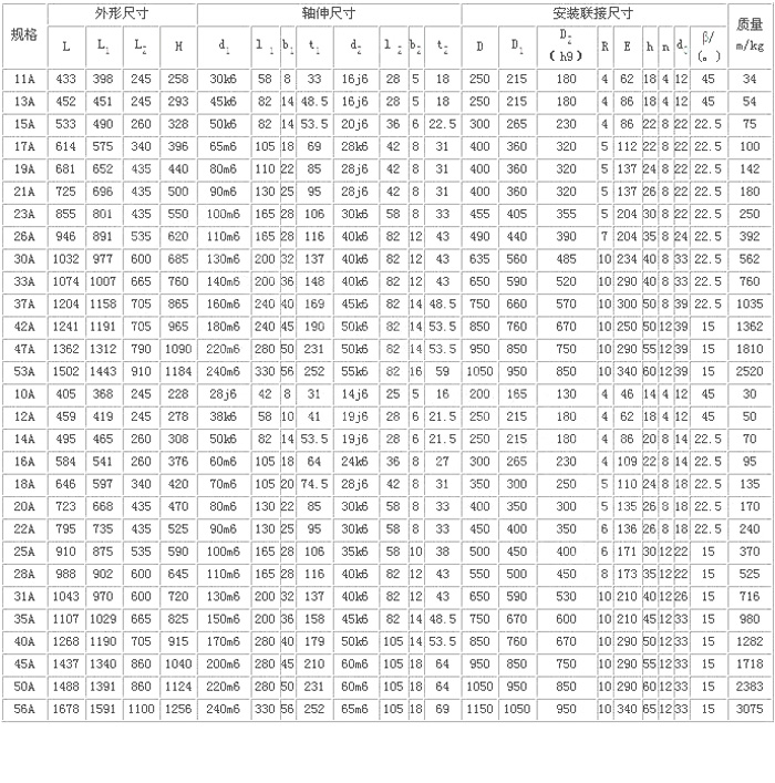 工作條件:輸入轉速28B型以下≤3000 r/min,40B型以下≤1800r/min,45B型以下≤1000r/min,Y型≤1500r/min;公稱轉矩2.107~588kN·m;傳遞功率0.25~2000kW;工作環境溫度為-40~45℃,低于0℃時,啟動前潤滑油應預熱,高于45℃時應采取降溫措施。