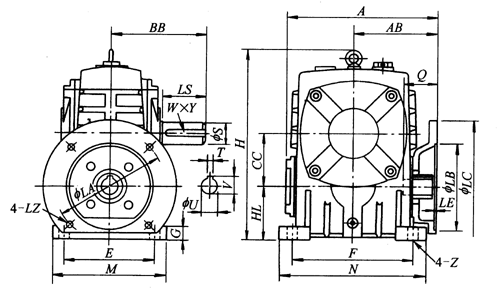 WPDA50、WPDA60、WPDA70、WPDA80、WPDA100、WPDA120、WPDA135、WPDA155、WPDA175、WPDA200、WPDA250型蝸輪蝸桿減速器主要尺寸